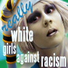 Description: Chiana from Farscape in a silly hat, captioned "really white girls against racism"