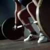Description: Tight shot of the shins and arms of a young woman (weightlifter Zoe Smith) as she prepares for a deadlift.